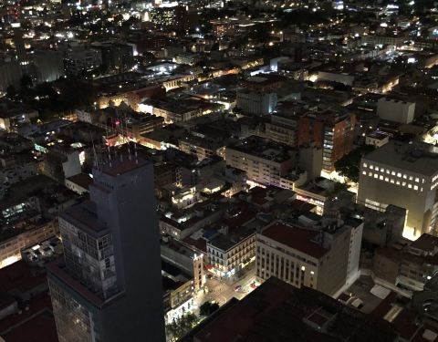 拉丁美洲塔每人120比索等塔看夜景。老实讲,墨西哥城的夜景并不是很惊艳,只有美洲塔对面的艺术宫还比较上镜,像主教堂和国家宫灯光很暗的。