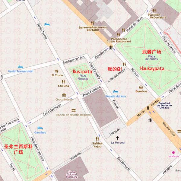 库斯科武器广场(西语:Plaza de Armas)在印加帝国时代叫做Haukaypata,意思就是”CryingPlaz...放下行李,迫不及待地出去,去看闻名已久的库斯科武器广场。刚才远远瞄了一眼,就已经感受到那种扑面而来的吸引力。
