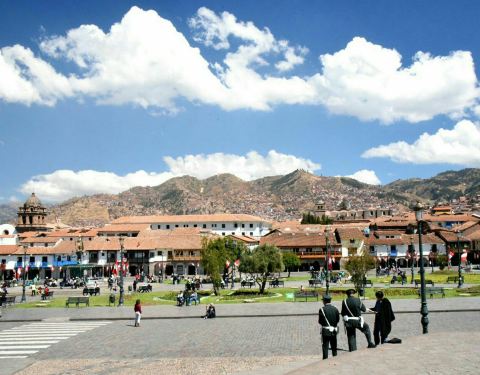库斯科的武器广场面积非常的大,库斯科大教堂位于广场的正前方,广场背靠大山,从远处观看整个广场非...库斯科的武器广场面积非常的大,库斯科大教堂位于广场的正前方,广场背靠大山,从远处观看整个广场非常的大气。这里的游人非常的多,是库斯科重要的景点,千万不要错过。