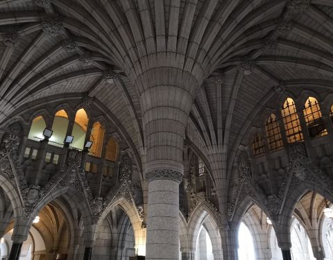 强烈建议去参观国会图书馆,这里的木雕和玻璃隔层绝对会让你觉得不枉此行的国会大厦真的很不错,里面的建筑非常精致,哥特式的建筑,里面的雕塑和壁画也非常地漂亮。强烈建议去参观国会图书馆,这里的木雕和玻璃隔层绝对会让你觉得不枉此行的!当时去的是三月份,不算旅游旺季,所以也不...国会大厦真的很不错,里面的建筑非常精致,哥特式的建筑,里面的雕塑和壁画也非常地漂亮。强烈建议去参观国会图书馆,这里的木雕和玻璃隔层绝对会让你觉得不枉此行的!当时去的是三月份,不算旅游旺季,所以也不需要排队,就可以到侧门这里领票。这里的参观只能够是跟着导游参观,你可以选择英语的或者是法语的Tour。一个Tour大概是40到45分钟,会带你从左边的众议院参观,然后到图书馆,最后到右边的参议院。参观完之后就会带你到和平塔的入口地方,你可以选择坐电梯登塔,也可以选择逛逛这里的礼品店。强烈建议大家都去登一下和平塔,这里可以看到渥太华的全貌,冬天还可以看到人们在里多运河上面滑冰。 展开