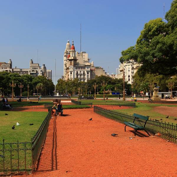 国会广场是布宜诺斯艾利斯较大的广场,你可以从五月广场向西走,沿五月大道一直走到尽头,便可到达。这里四处可见觅食的鸽子,喂鸽子的游客和当地人。 广场上矗立着闻名的两届议会纪念碑(1813年制宪大会和1816年议会)。