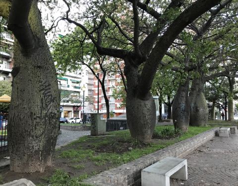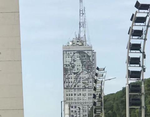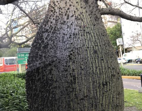 布宜诺斯艾利斯七月九日大道是为纪念阿根廷独立日而命名,是世界上最宽的大道,双向18车道。 我们在布宜住的酒店就在大道边,打开窗户就能看见两侧街道(夜景图1⃣️2⃣️),第二天一早起来拍摄大道,但还是听从导游的吩咐,小心翼翼的在酒店附近拍摄,不敢走远。看到一种大肚子一样的树干,不知名,就叫它“啤酒桶”树吧。