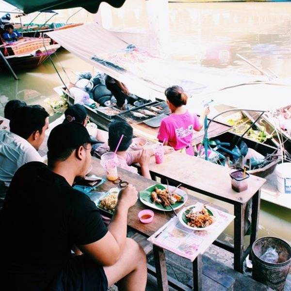 到了安帕瓦,沿河边就有好几家售卖萤火虫船票的点,一个人是60铢,包船是600铢。询问了价钱...回到曼谷的时候尚早,刚好这天是周五,朋友们提议了去安帕瓦水上市场。