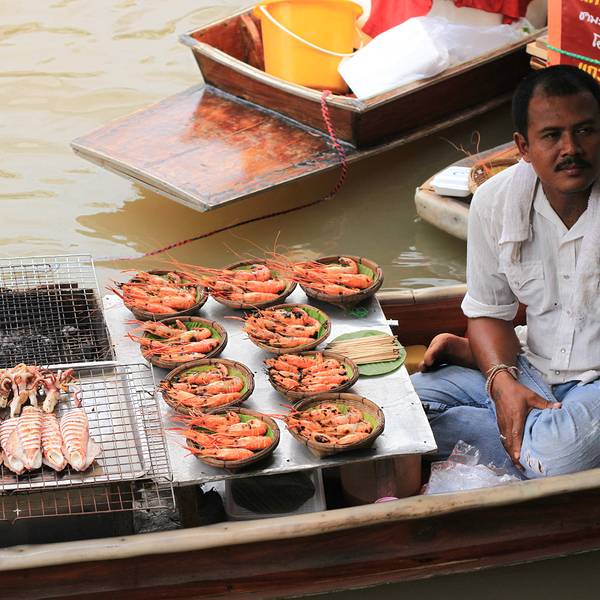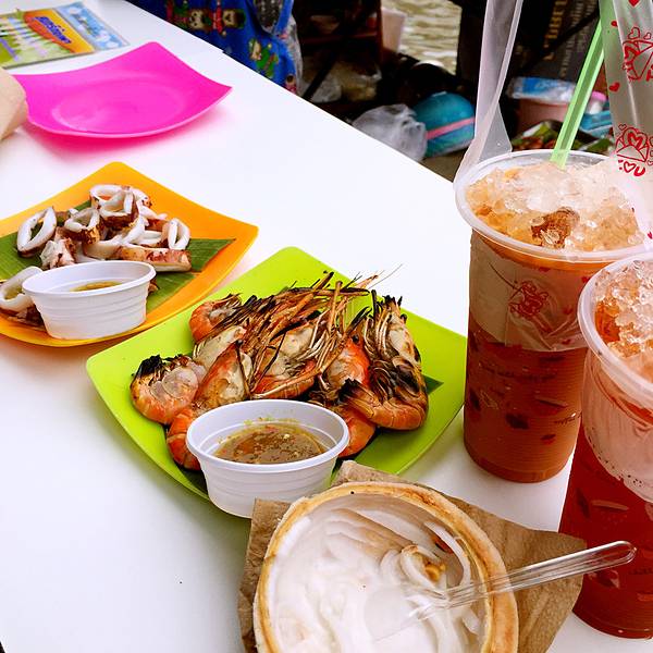 金骆驼 美食:来这里千万不可以错过这里的海鲜大餐,这一份大虾200B,很划算,每个都超级新鲜,现点现烤安帕瓦水上市场是泰国著名的水上市场之一,得知这个水上市场只有周五、周六、周日的时候才开放,觉得难得赶上,就计划从曼谷前往安帕瓦。