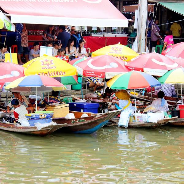 安帕瓦水上市场是一个比较有特色的集市,所有的商品都放在小船上,人们坐着小船在拥挤的河道中穿梭,...夜功府为泰国中部的一个府,是泰国面积最小的府治,安帕瓦水上市场是一个比较有特色的集市,所有的商品都放在小船上,人们坐着小船在拥挤的河道中穿梭,交易商品。