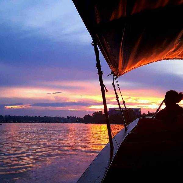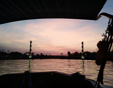 傍晚河上的景色真的很美啊。询问了价钱后,我们没有立刻上船,而是在岸边上闲逛一下夜市,等候最佳登船时间回到曼谷的时候尚早,刚好这天是周五,朋友们提议了去安帕瓦水上市场。