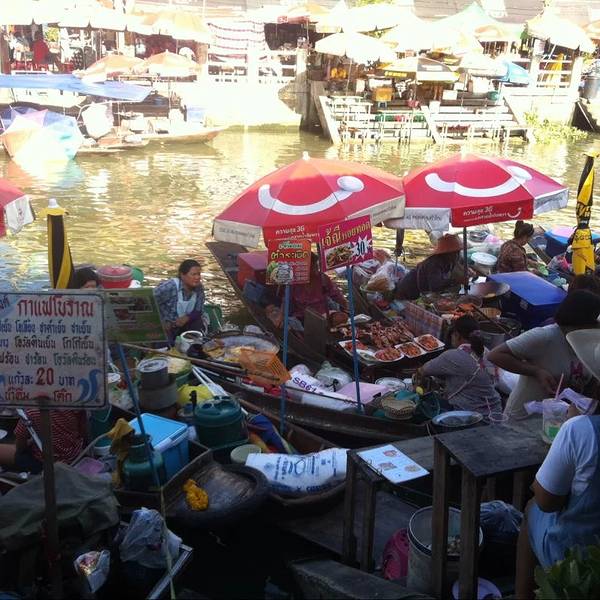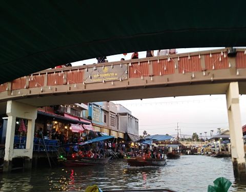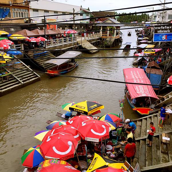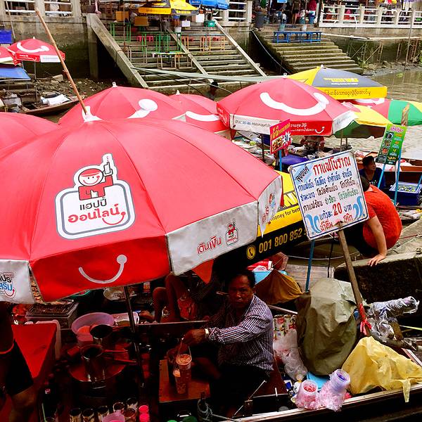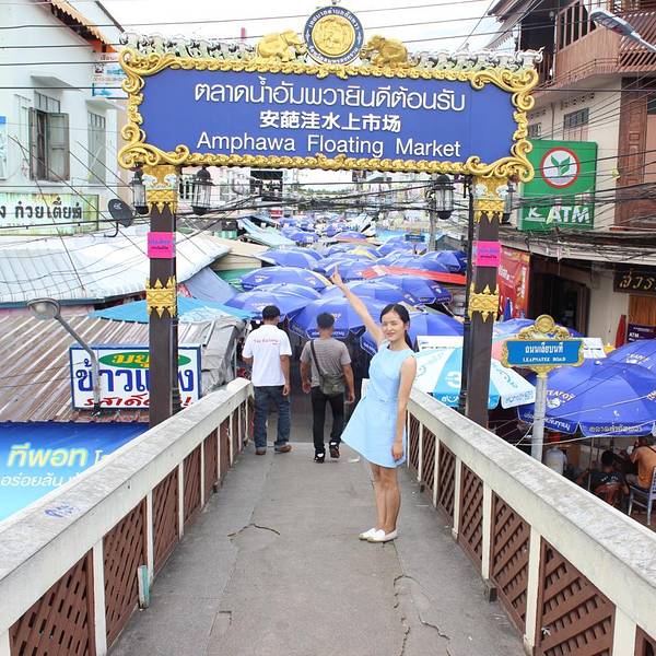 交通:这个水上市场和那个铁道市场一样,靠近郊区,不是自驾的话,确实有点麻烦。以前的攻略上说,在胜利纪念碑站的立交桥下有前往安帕瓦的小型巴士(Mini-Van)的售票点,单程票价80铢,2小时一班,好了,现在我要澄清一下,这个车目前没有了!!!现在去水上市场除了自驾只有两种方式,1.淘宝预定一日游的团,基本上天天发,很方便,大概也就人民币一百多。2.如果你不嫌麻烦,你可以去南部汽车站坐大巴。这个就有点麻烦,毕竟曼谷很大,转来转去很麻烦。