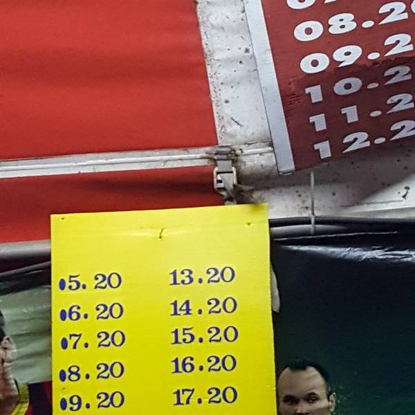 我们点了3样,花螺 30铢,鱿鱼150铢,青木瓜沙拉(超级无敌辣)30铢。在哪里下车,就在那里上车回曼谷。车票可以提前预订,也可以即场购买,但8点的末班车一般人都比较多,怕没位置的话,建议还是提前买了(以下是回曼谷的班车表)。 展开