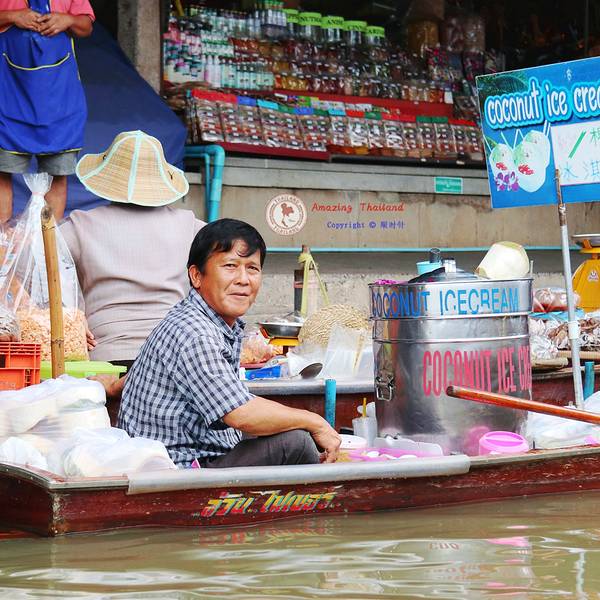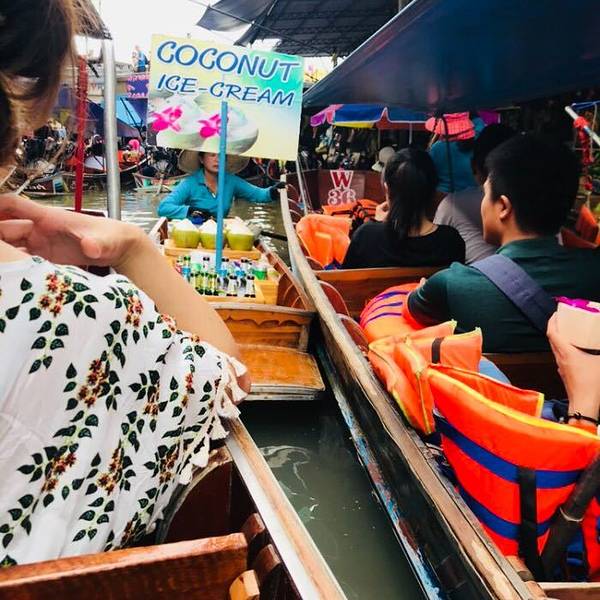 丹嫩沙多水上市场,据说在曼谷的胜利纪念碑附近有小巴可以直达,语言不通个人感觉颇为麻烦,加上到达水上市场后,在当地坐船又得自己讨价还价,一不小心还容易被坑。因此还是建议报个靠谱的一日游。