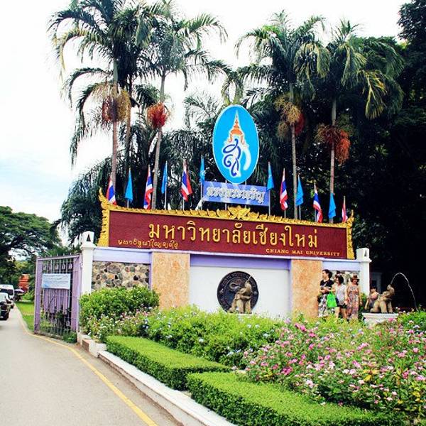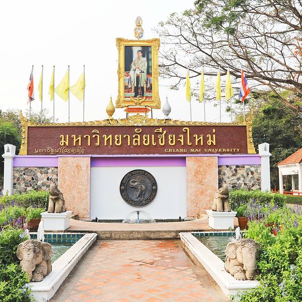 清迈大学是泰国为数不多的顶尖高等学府之一,共有四个校区,其中主校区位于素贴山脚下,是游客去往双龙寺或蒲屏皇宫的必经地点。前门挂有皇室成员的相片,且两侧各有两个小的石象,前面是趴着,后面是仰头翘鼻。