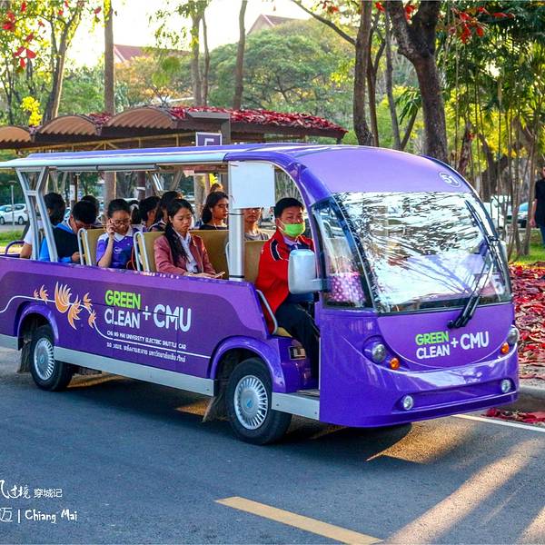 金骆驼 游览清迈大学必须搭乘校内观光车,门口附近会有保安阻拦游客直接进入。观光车的运营时间是9:00-17:#点评召集令#