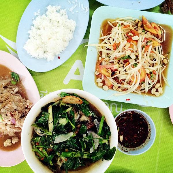 其中一幢教学大楼这是乘坐缆车唯一允许下车拍照的地方,司机给大家15分钟拍照,拍完一通后在坐回缆车,继续车上游览清迈大学就此告一段落,没有想象中的那么好玩,也就是环境宜人烈日当头,忽然想起原来午饭还没有吃过,看到对面有很多小餐馆,挑了个顺眼的就进去了,实在热到不行,先来个冰镇椰汁解渴,这么大一个才40B一桌菜,还有个烤鸡和鸭舌没拍,总共才380B,和魔都比起来,太便宜了 展开
