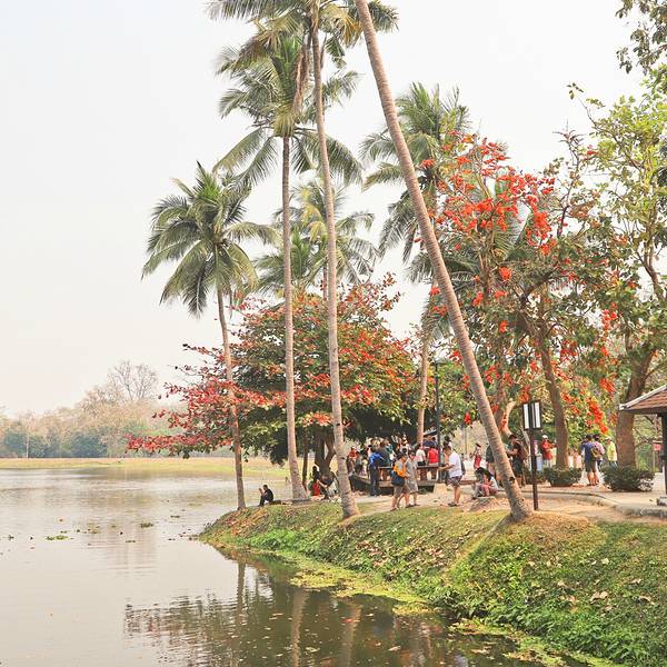 乘坐观光车游览校园,在净心湖小憩;逛清迈大学夜市,体验大学生的夜生活。
