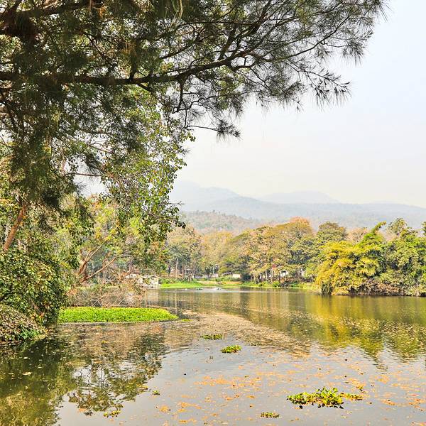 清迈大学是泰国北部首屈一指的高等学府,创立于1964年。校园中有草木繁茂的绿地、掩映在树林中宁静的水池,环境非常不错。大学主校区坐落在素贴山的东边,很多游客在前往素贴山时会顺便来参观一下。乘缆车进行游览现在清迈大学对游客观光采取了限制措施。如果你有在清迈大学就读的朋友或认识的当地人,或许可以带你进校园自由走动,对于大部分中国游客来说,需要在校园正门花60泰铢乘坐校方安排的观光车。清迈大学的校门小而精致,典型的泰式风情。进去后,游客就被安排乘坐观光车。大概每30分钟有一班车,会先带你在校园的中央区域转一圈,然后在佛楼、净心湖稍作停留,供游客下车走动、拍照,之后再返回正门结束游览,全程约30-40分钟。观光车上有中文讲解,但在乘车过程中游客不能随意下车。感受校园悠闲的学生岁月校园中的佛楼就像一座小型的寺庙,在外面可以看到大象石雕,里面还有佛像,但一般不能进去。净心湖有着十分漂亮的景色,湖中倒映着素贴山的轮廓,宁静美好。坐在观光车上看校园,还常会见到身着校服、骑着摩托车的男女学生,充满了清新的质感,令人不禁想起自己的青葱岁月。热闹的清迈大学夜市由于观光限制,你可能来不及领略更多的校园风光,但如果你时间充裕,倒不妨在晚上去学校正门的对面逛逛,那里有一个很大的夜市。在清迈大学夜市可以看到很多大学生,还能吃到许多当地小吃,便宜又美味,也比较干净,可谓是体验大学生夜生活的好地方。吃到撑的美食街在清迈大学后门,每到下午4点多钟之后,小贩们就会陆续出摊,沿街摆出各种让人眼花缭乱的美食摊子,直到10点多才会陆续收摊。清迈著名的小黄熊餐厅也位于这条美食街上。包括烤肉炸鸡、泰式米粉汤、鲜榨果汁、椰子牛奶冰等美食,绝对能让你挑花眼吃到撑。置身满是清迈大学学子的美食街内,仿佛自己都成了当地人。