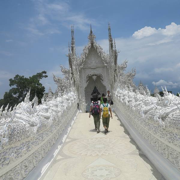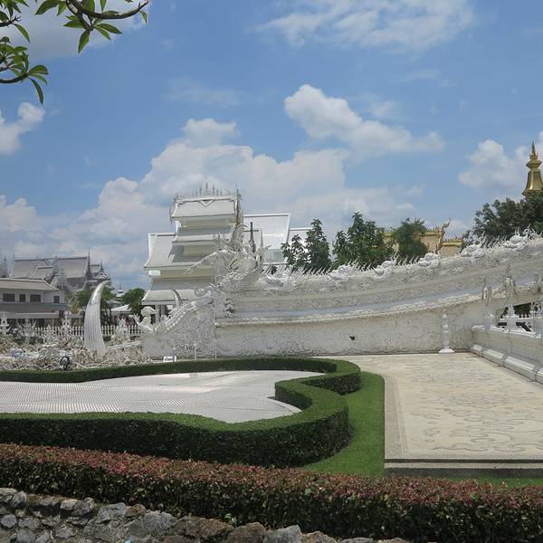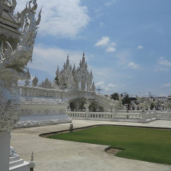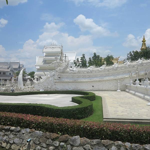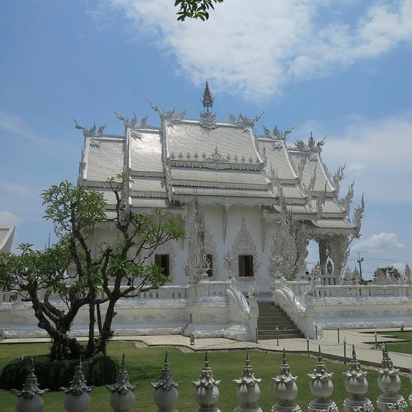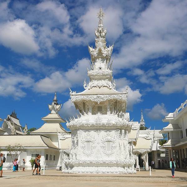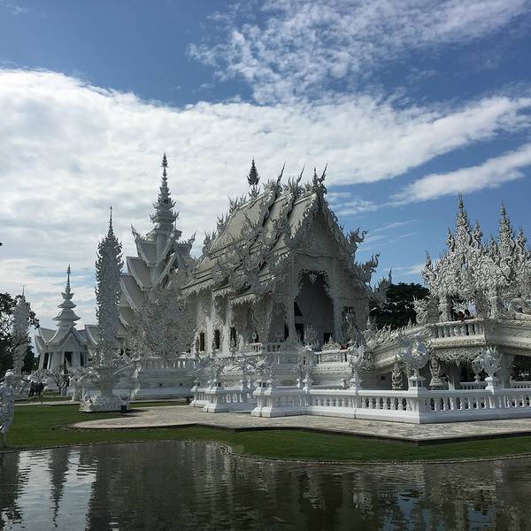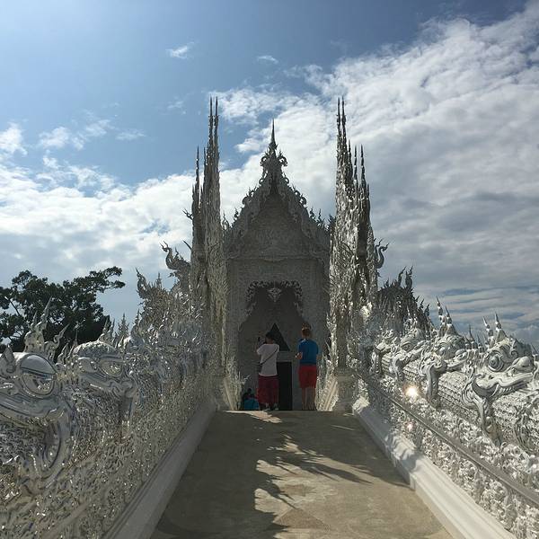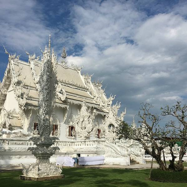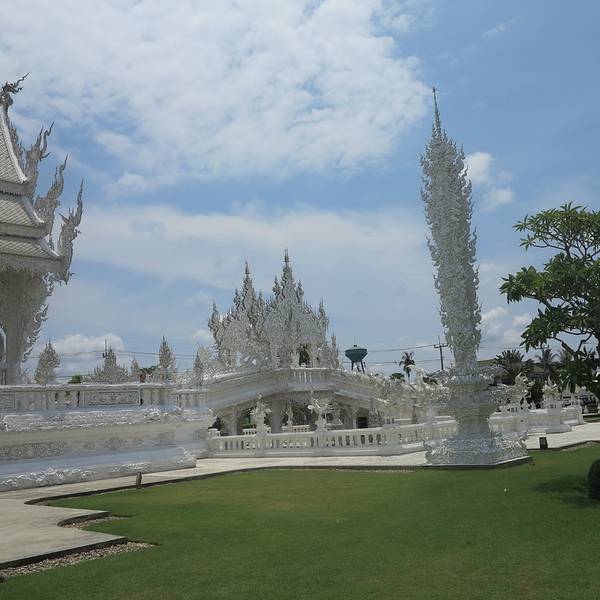 [白庙的游玩方式]:清迈有很多白庙一日游的团,虽然很方便,但我始终觉得不能够深度游览白庙,于...[关于白庙]:白庙位于泰国清莱府,是由泰国的知名艺术家Charlermchai Kositpipat出钱出力、设计建造而成的。