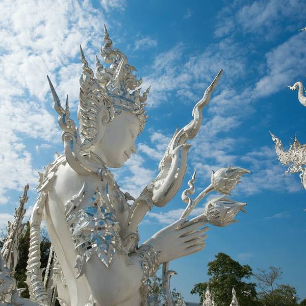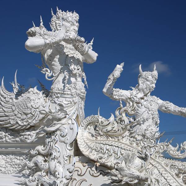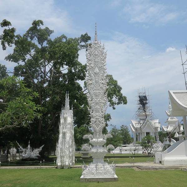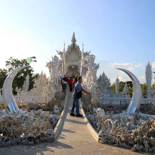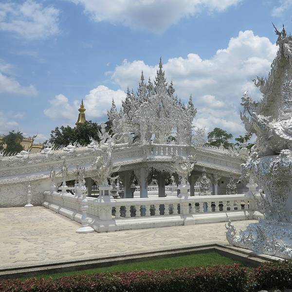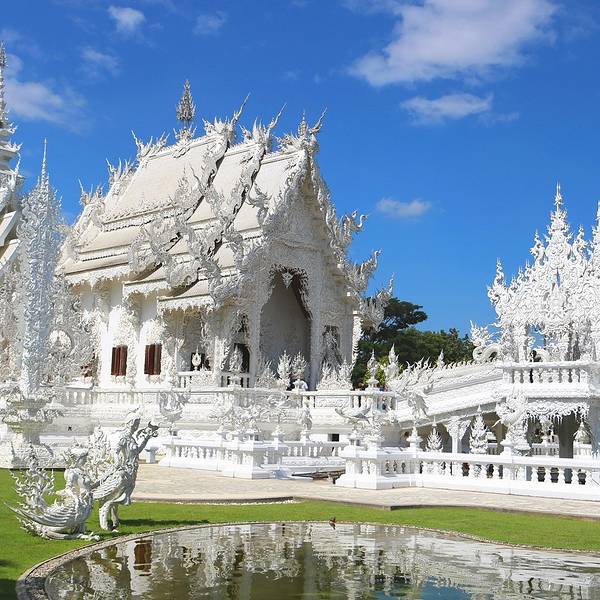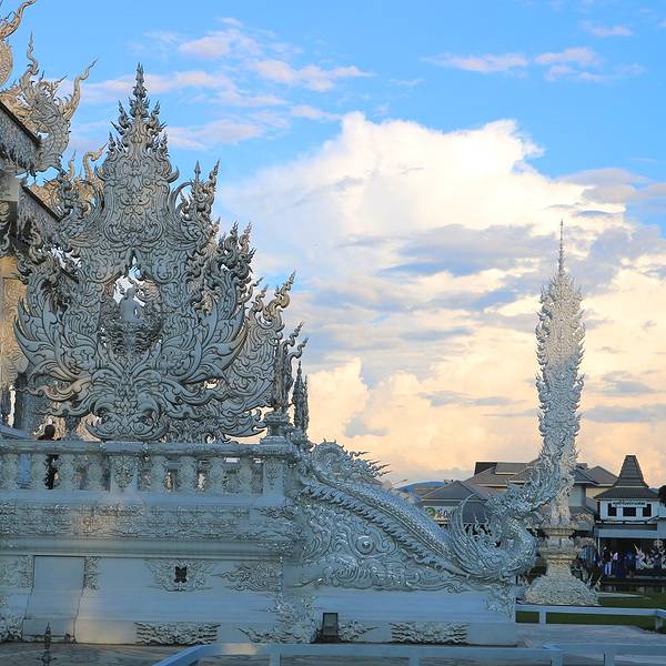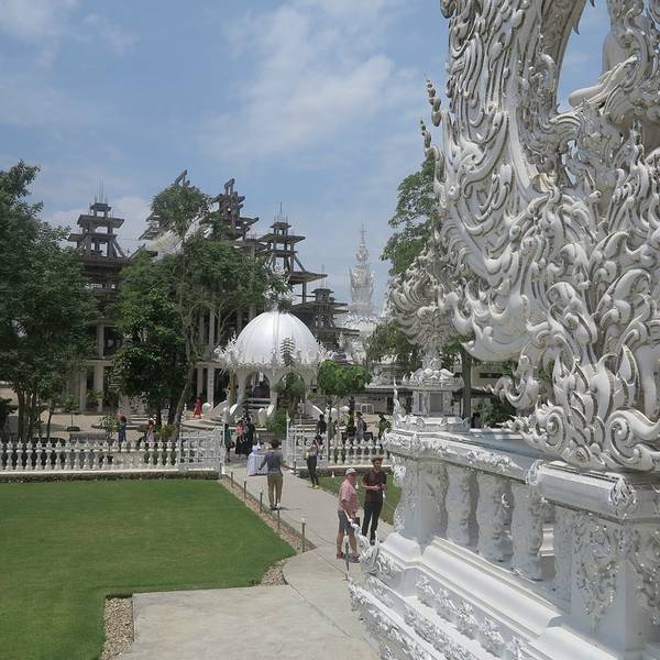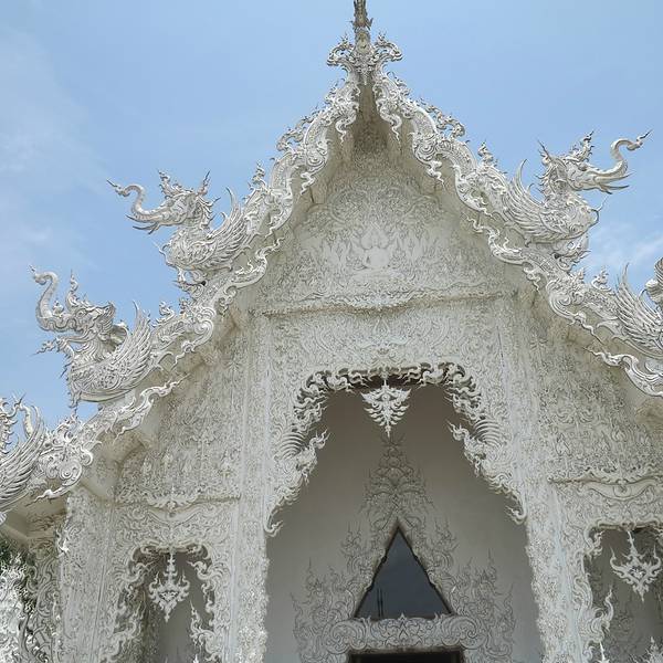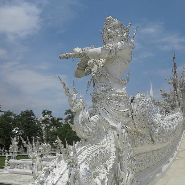 [白庙的游玩方式]:清迈有很多白庙一日游的团,虽然很方便,但我始终觉得不能够深度游览白庙,于...[关于白庙]:白庙位于泰国清莱府,是由泰国的知名艺术家Charlermchai Kositpipat出钱出力、设计建造而成的。