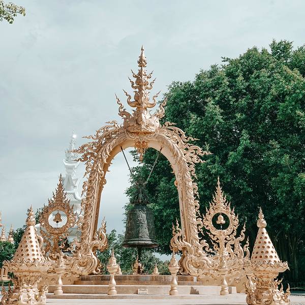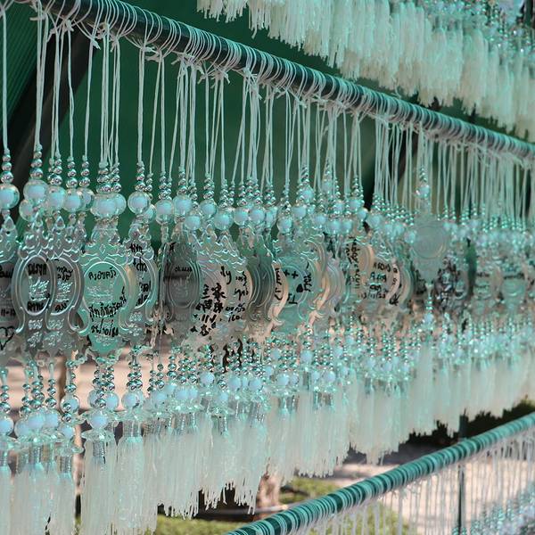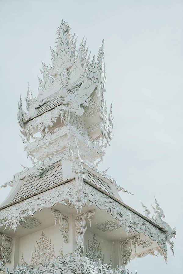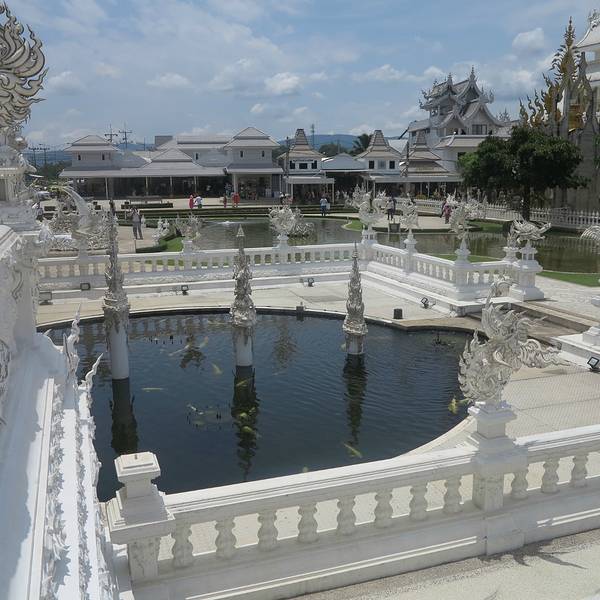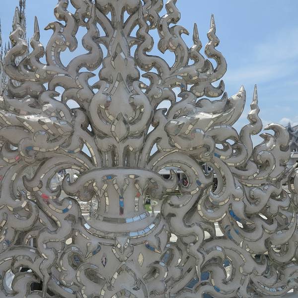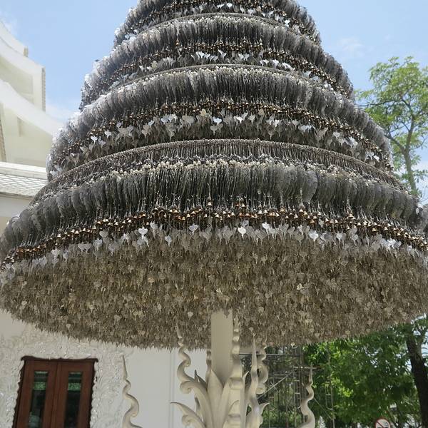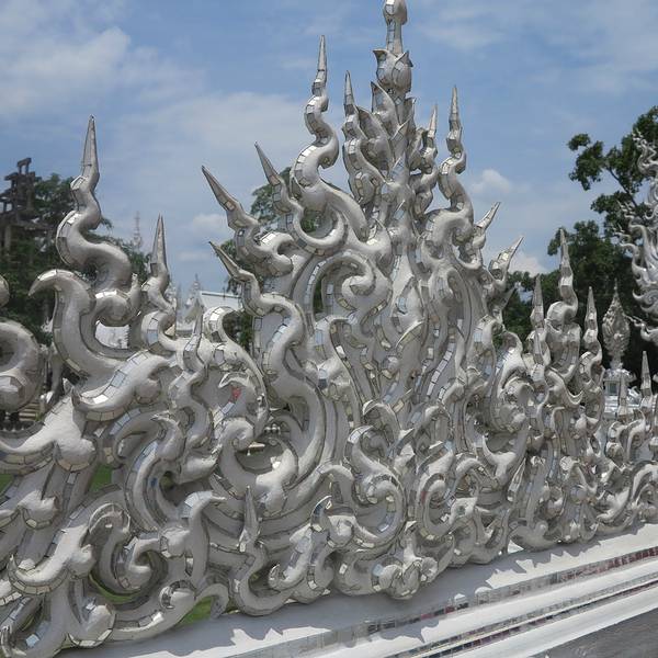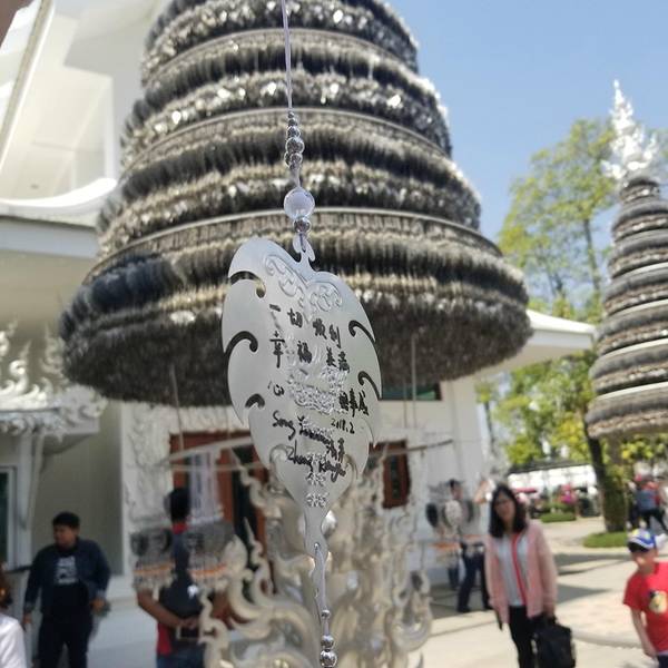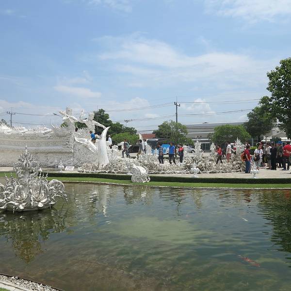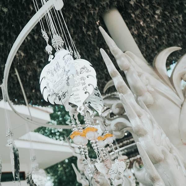 远远看,白庙就像一座用纯银打造的艺术品,每一处的构造和细节都让人惊叹,跟旁边的水池、树木相映成趣,犹如天堂之境。近看的时候,建筑的细节和花纹很精致,精美又对称,每一处的设计都赋予的白庙最大的魅力。怪不得有那么多的人对它趋之若鹜,不管是拍照打卡,还是为了见证一座建筑之美,或者是为了求福,白庙的纯洁和神圣都让人向往,只为看它一眼。白庙的设计具有很大的特色,庙里的许愿牌都是用银色做的,一个许愿牌30泰珠,可以求一份心愿。白代表纯洁,而这些闪闪发光的玻璃片代表了智慧,通往庙堂的奈何桥,以及两旁“手池”的构设等等这些,每一处的细节都是文化赋予的产物。 展开