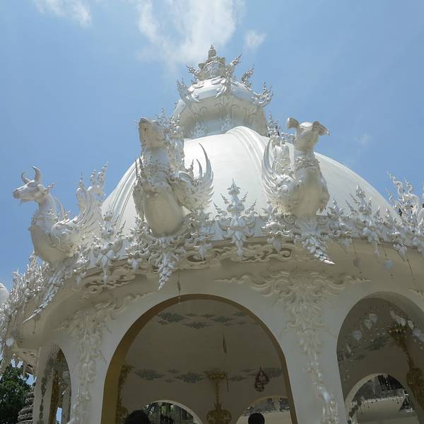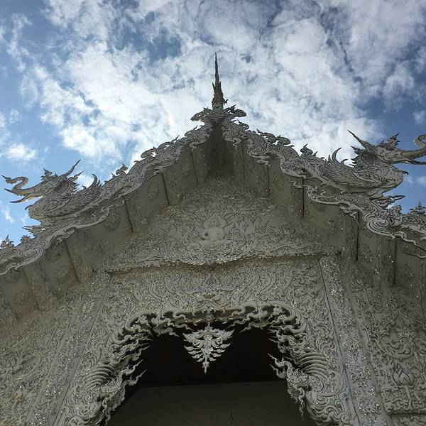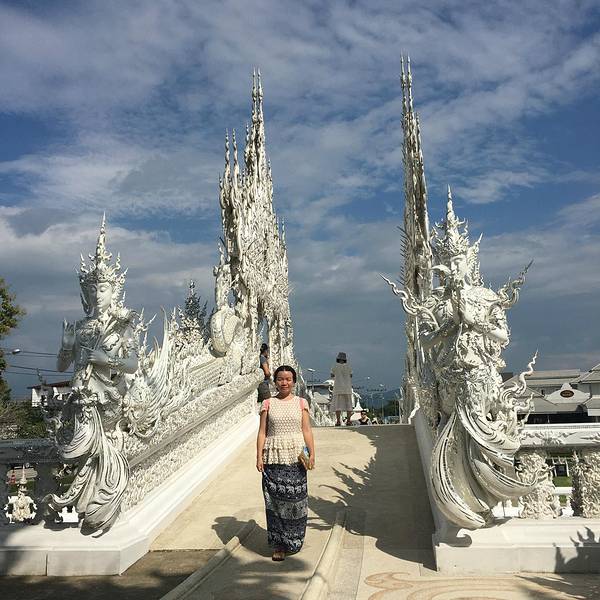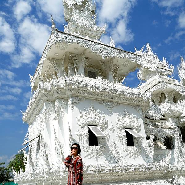 实用 ...建议大家一定要早点去,我们当时就是起了个大早从清迈出发的,到白庙的时候不到十点,那时候人还不多和清迈众多金光灿灿的寺庙比起来,白庙简直就是寺庙届的一股清流;通体纯白又闪耀着银光的她美得纯粹美得狰狞,像一件绝世的艺术珍宝,骄傲、冷艳,展示着她的美的同时却又拒绝人靠近……在蓝天白云的映衬下,白...和清迈众多金光灿灿的寺庙比起来,白庙简直就是寺庙届的一股清流;通体纯白又闪耀着银光的她美得纯粹美得狰狞,像一件绝世的艺术珍宝,骄傲、冷艳,展示着她的美的同时却又拒绝人靠近……在蓝天白云的映衬下,白庙像从天宫降临的神,审视着人间的一切,对人间的一举一动了然于胸,主宰着世间万民的生死;他是全知全能的、手握生杀大权的王!每一处细节都美得无懈可击,美得完美无瑕!她又像是手握莲花的菩萨,虽是不食人间烟火的神,身形却也一样的妩媚妖娆到足以魅惑人间!白庙的每一处都足够繁复却又足够精致,她像一件绝世的艺术珍品,让你只想把她捧在手心啧啧称赞!这个金光闪闪的建筑,你一定想不到,这是个洗手间!史上最奢华洗手间,没有之一!和白庙合影,觉得自己也变女神了:)白庙的美是毋庸置疑的,也无需我再多言,只希望世人都能去领略她那独一无二的美!