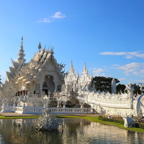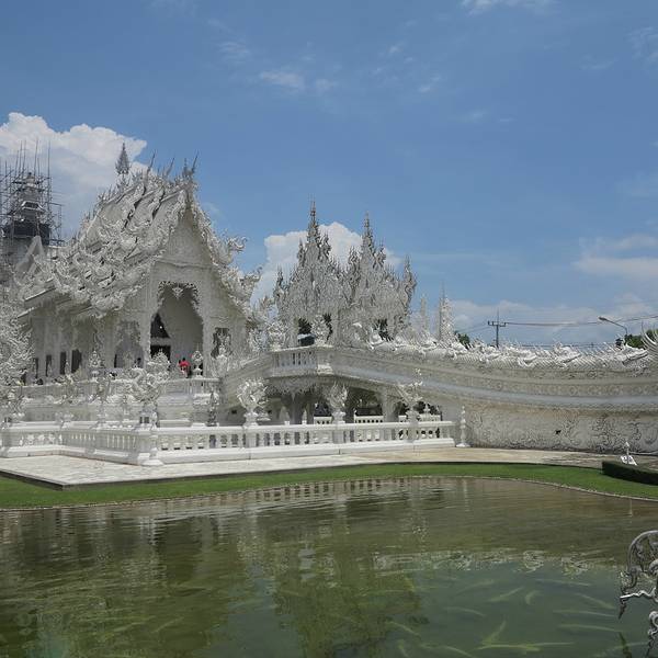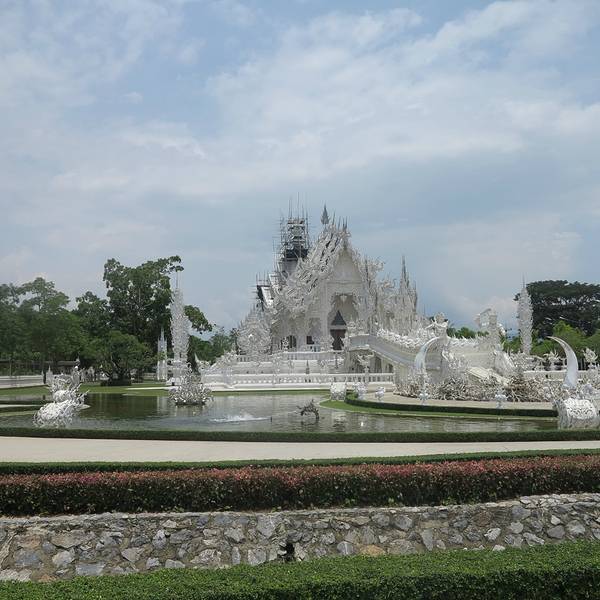 我们习惯称它为白庙,由 泰国 著名艺术家Chaloemchai Khositphiphat所设计,于1998年开始建造,是泰国 清莱 正在建设中的一座寺庙。之所以叫白庙,是因为它的整个庙的用色都是白色的,纯洁的白色,远远看的时候非常美!这是我来到 清莱 最让我震撼的一个景点,寺庙本来让人严肃、尊重,而纯洁的白庙让人更加不敢有丝毫轻慢之心。