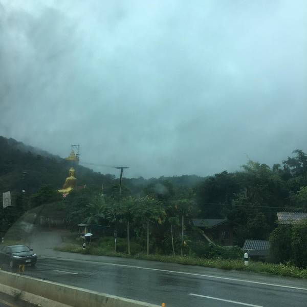 从清莱汽车站到白庙单程4个小时左右,路不是很好走,没有什么高速公路,七拐八拐的,小雨、大雨、乌云密布、蓝天晴日,一路上都经历了,整个路上所见到的美景和看到的原始的当地风土人情,也算是抚慰了一切疲惫和不快。