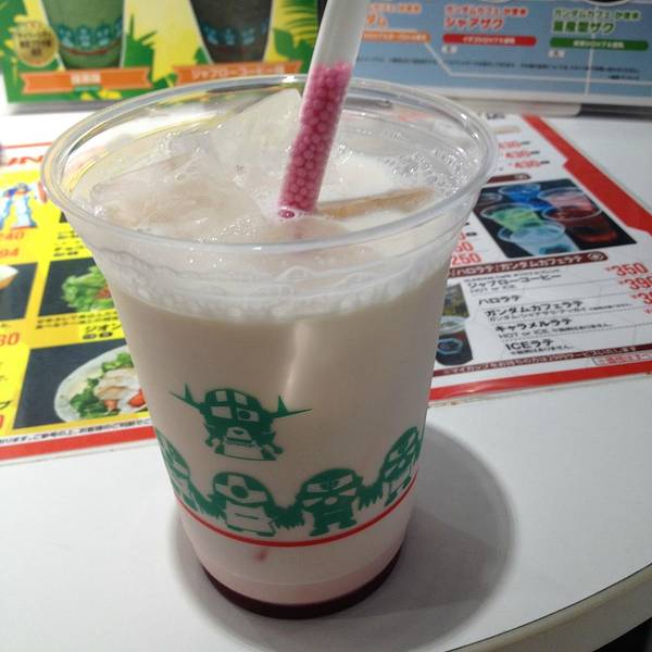 提前上网预订门票,赠送的饮料(几乎当场的饮料都可以任选哦)吸管填充的红色颗粒是仿照光束剑?高达前线去台场有新交通(高架电车)直接到达,但还是得要半小时。因为御台场在东京湾的人造岛上。