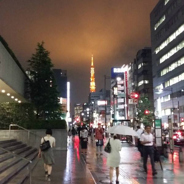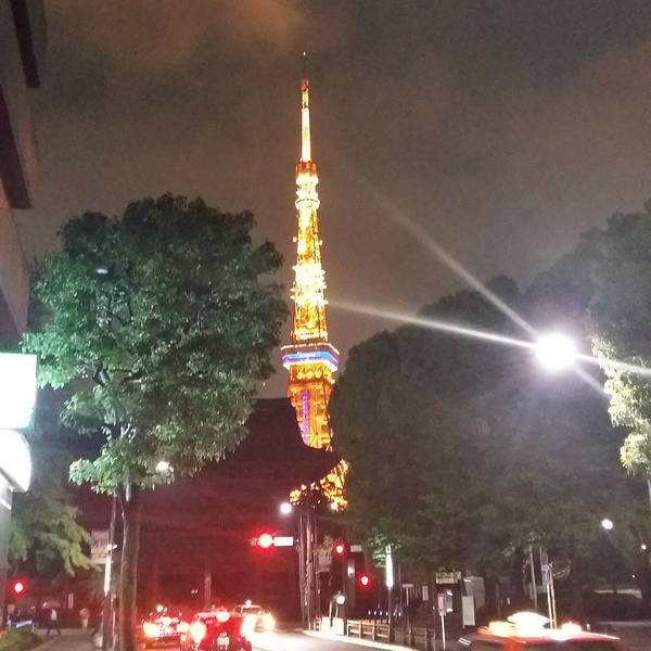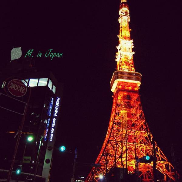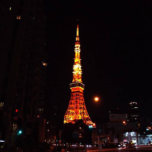 从神谷町出来,沿着街走一段,一拐弯,东京塔就伫立在眼前了,猝不及防的美丽。东京塔通体点亮橘色的灯,在夜色中璀璨的闪耀着,如梦幻般不真实。