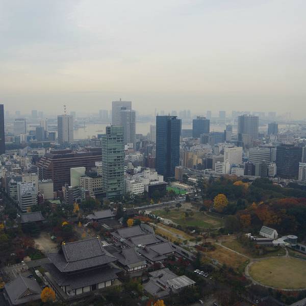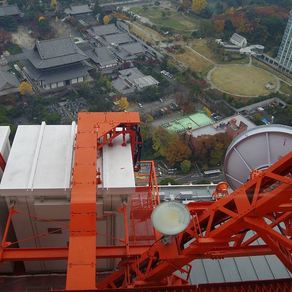 【东京塔参观】从入口进去,坐电梯先到150m的观景台,这边的观景台设计不错,都是可以360度眺望的,看的非常清楚。150m的观景台不算很高,周边的楼房和神社一览无余。坐电梯再向上去到250m的观景台,这边的电梯居然不是全封闭的,镂空的设计加上还有点晃悠,感觉还有点小吓人。250m的观景台就非常高了,可以眺望非常远,天气好点的话,可以看到远处的彩虹桥和台场了。