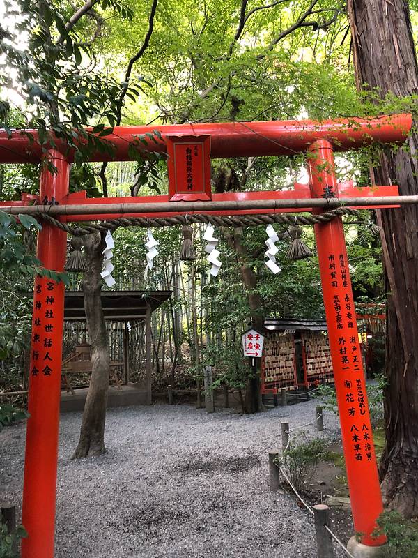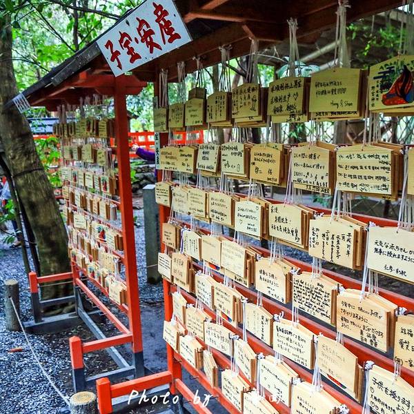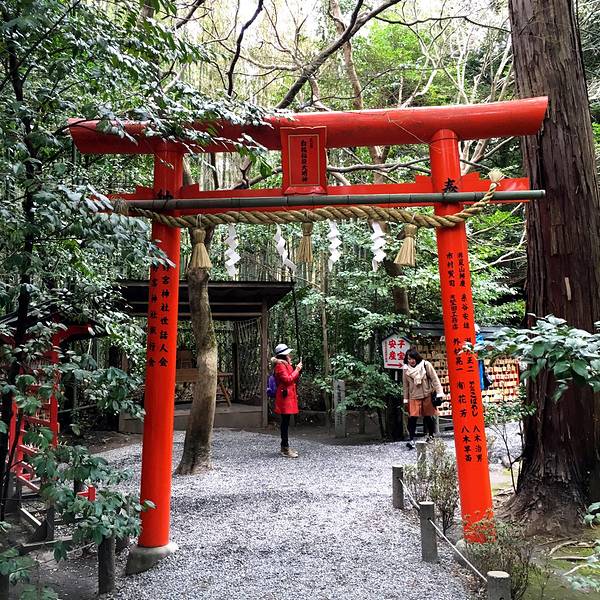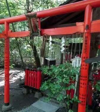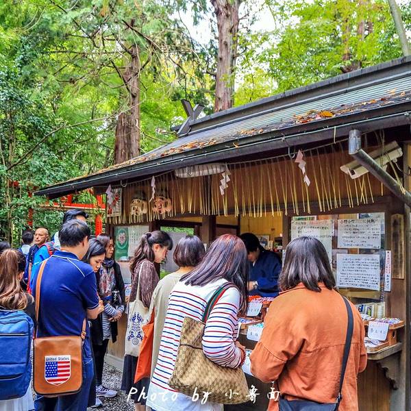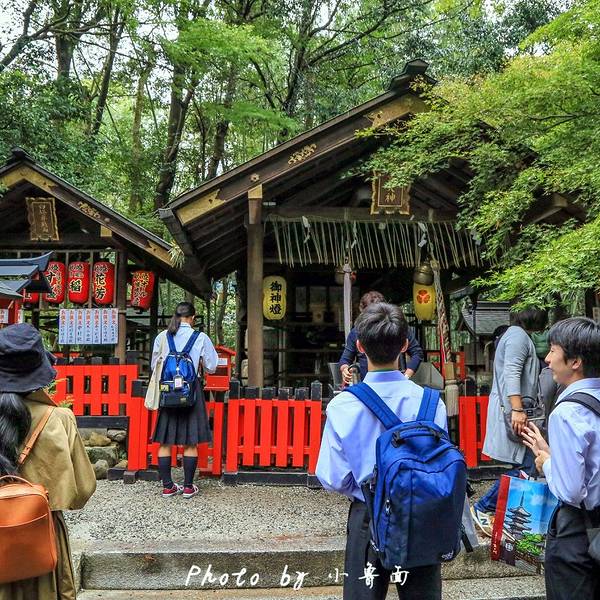 有一个黑木的鸟居满特别的。所以虽然是很小的一个庙,但是人气还蛮旺的。这个神社位置在岚山的边上这个神社位置在岚山的边上。从竹林小径进去不久就可以走到。有一个黑木的鸟居满特别的。据说这个地方是《源氏物语》小说里边提到过的。所以虽然是很小的一个庙,但是人气还蛮旺的。