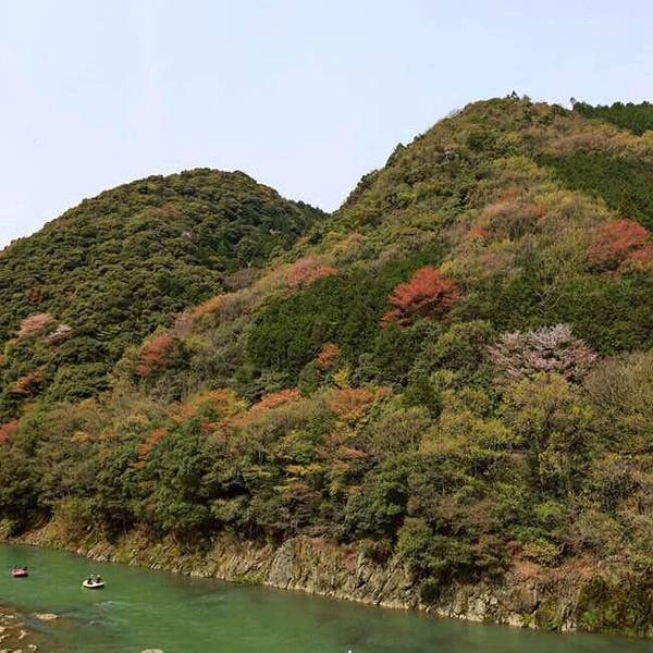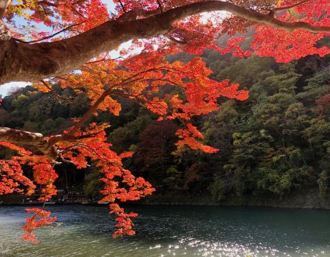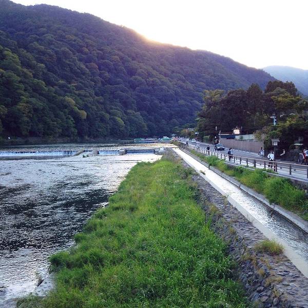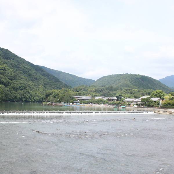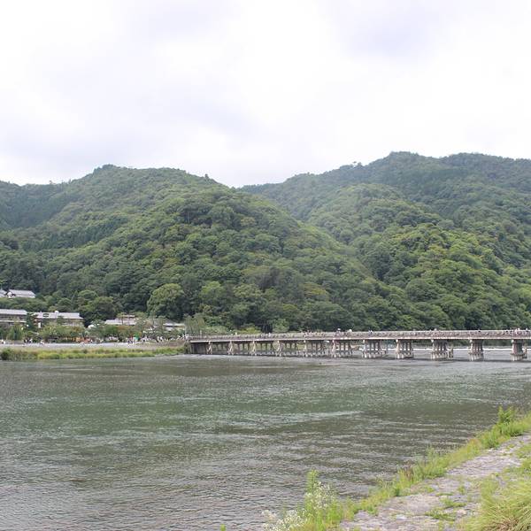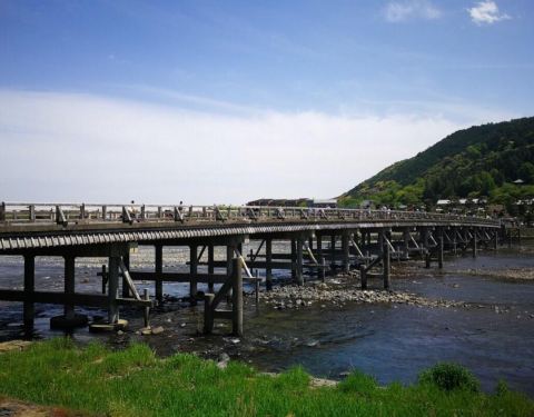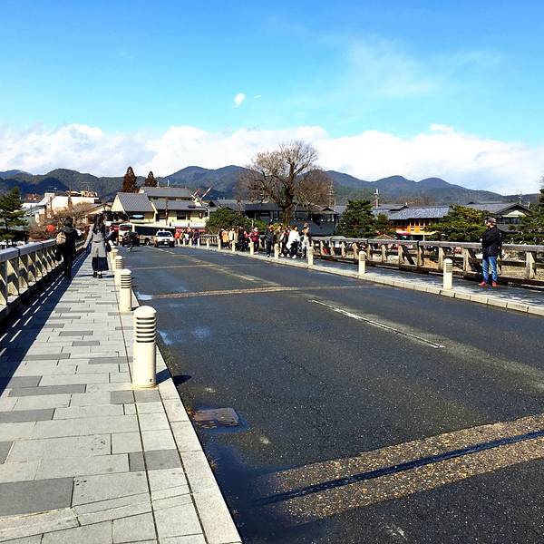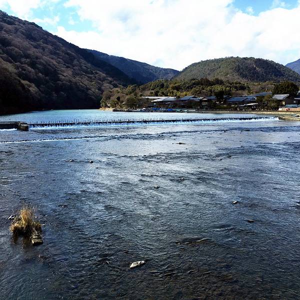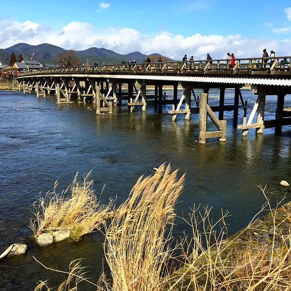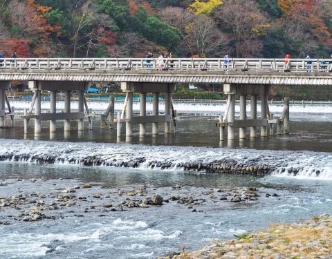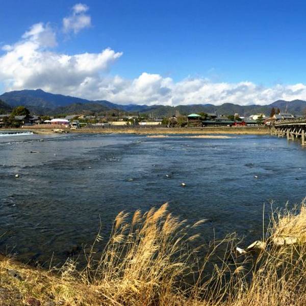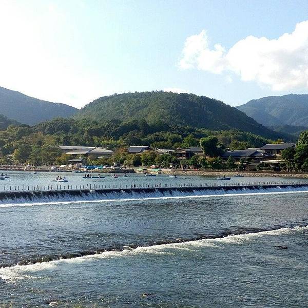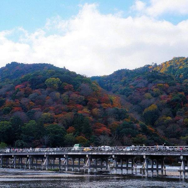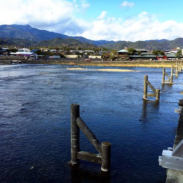 河水川流不息,秋季可以在桥上赏岚山枫叶,其他季节也有美景。