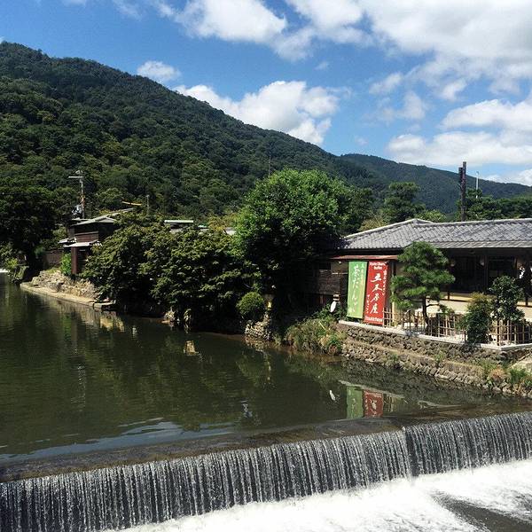 金骆驼 也是很多旅游团必去的地方,它之前是将军府,所有无论是园林设计还是建筑物都非常霸气,里面的金阁寺...渡月桥是岚山风景区比较有名的景点之一,穿过竹林小道一直走到尽头差不多就到了。岚山很大,去的人其实很多所以刚到景区的时候觉得岚山人很少,直到到了渡月桥才发现,人都跑到这里来了。渡月桥确实非常美,两边...渡月桥是岚山风景区比较有名的景点之一,穿过竹林小道一直走到尽头差不多就到了。岚山很大,去的人其实很多所以刚到景区的时候觉得岚山人很少,直到到了渡月桥才发现,人都跑到这里来了。渡月桥确实非常美,两边都是郁郁葱葱的大森林,而且枫树巨多,我们去的时候是夏天,可是有一小部分枫叶已经开始变红了,他们夹杂在绿油油的大树中间,看到的一瞬间就是“万绿丛中一点红”,岚山的空气最好的就是在这了。有名的渡月桥就是连接两处山峰的桥梁,桥身是钢筋建造,而桥面则为木造,整体看起来古香古色的,站在桥上能看到两边的风景,桥下的水流清澈见底,而且很湍急。河岸边坐着很多游客,虽然是夏天在岸边坐着也有一种透心凉的感觉,特别舒服。河岸边停泊了很多船只,我们出租了一辆手划船,挺便宜的两个人1000日元,还有一种电动的船,稍微贵点,两个人得要3000日元,不过比较遗憾的是我们都不会日语,其实师傅非常热情健谈,可是聊天止于语言不通,只能互相对望笑一笑。坐在船上看风景感觉特别不一样,最好玩的是这条河流的水流速度不一样,所以船只时而很平缓,时而很迅猛。一路上能看见不少古朴的居民房,京都人都很喜欢在住宅前面种植植物,看着非常小清新。从上船那一刻到终点这水的颜色都不一样,越来越蓝,而且越来越深。