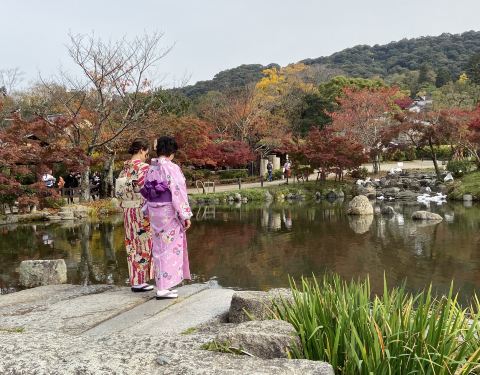 圆山公园的日文名是叫做“円山公园”,这是一处开放式的公园,深秋来的时候,这里的红叶也十分好圆山公园的日文名是叫做“円山公园”,这是一处开放式的公园,深秋来的时候,这里的红叶也十分好。虽不似附近的高台寺、清水寺的红叶那么的有名,但円山公园胜在地域开阔,不收门票,因此有很多和服妹妹带着专业...圆山公园的日文名是叫做“円山公园”,这是一处开放式的公园,深秋来的时候,这里的红叶也十分好。虽不似附近的高台寺、清水寺的红叶那么的有名,但円山公园胜在地域开阔,不收门票,因此有很多和服妹妹带着专业的摄影师来这里拍写真。 展开
