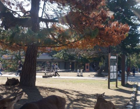 2、JR奈良车站或近铁奈良车站市内环行公共汽车外勤(2号)“冰室的神社、国立博物馆”车站下车