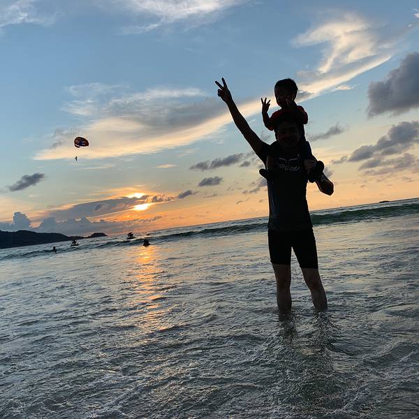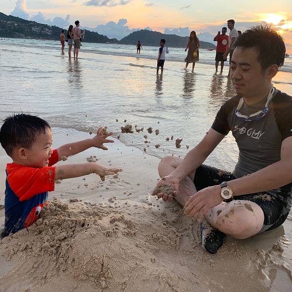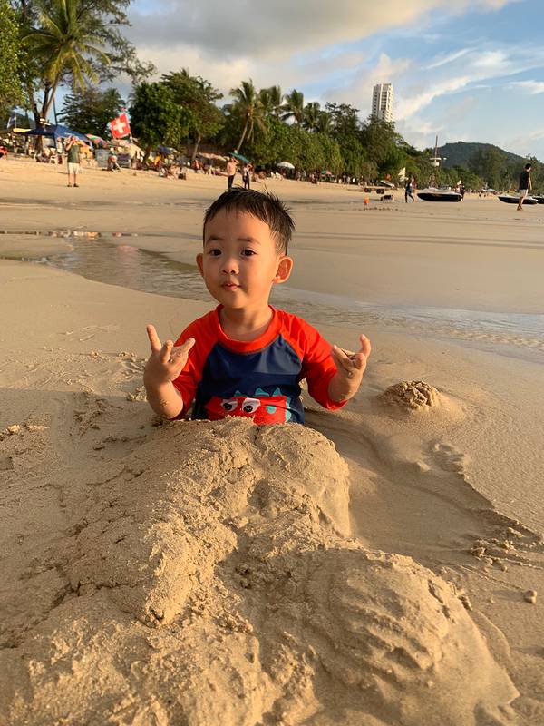 尾巴从小就去亲子游泳,一直教的都是要跳水,以至于在水里胆子贼大,爸爸在泳池只顾自己游泳,尾巴追...在普吉岛的最后一晚上,在酒店游泳池游了一下,再去海边玩了一会,海滩水其实很干净,就是没有离岛的蓝,海滩也没有离岛的白,人不多,但是已经比国内大部分海好多了!