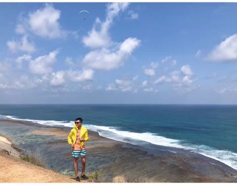 一个比情人崖 美一百倍的悬崖顶上。虽然晒的黑成碳 但也依旧掩盖不了我自然帅的完美[微笑]一个比情人崖 美一百倍的悬崖顶上。 大风、大浪,蓝天,白云,眺望远方。虽然晒的黑成碳 但也依旧掩盖不了我自然帅的完美[微笑]