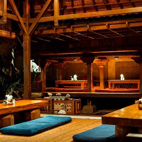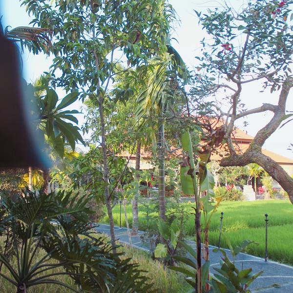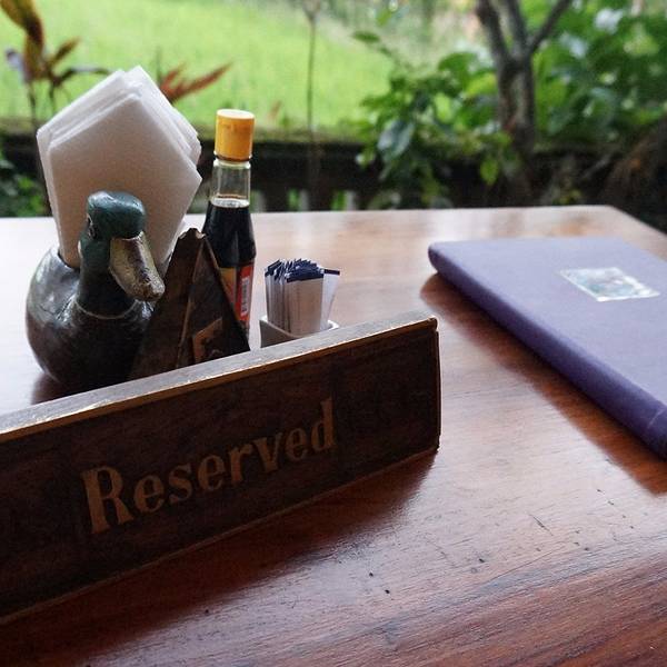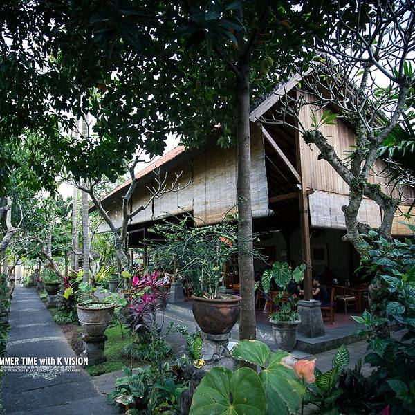 - 这里有一片稻田,用餐的露天卡座也很有特色,是需要脱了鞋盘坐的榻榻米风格,典型的巴厘岛建筑
