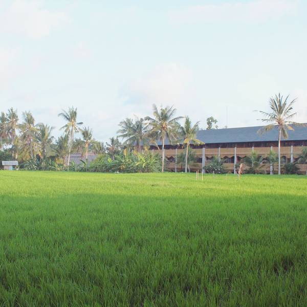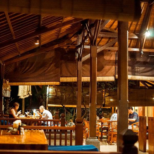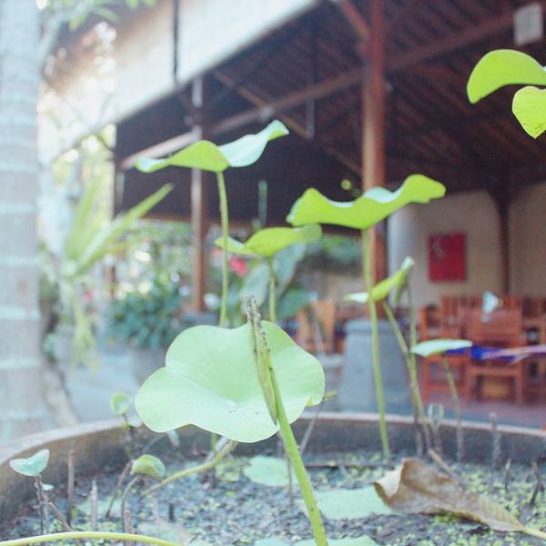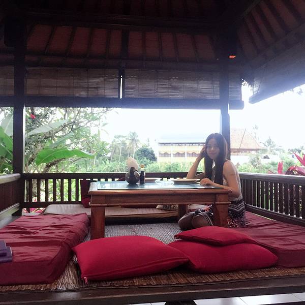 这里有一片稻田,用餐的露天卡座也很有特色,是需要脱了鞋盘坐的榻榻米风格,典型的巴厘岛建筑
