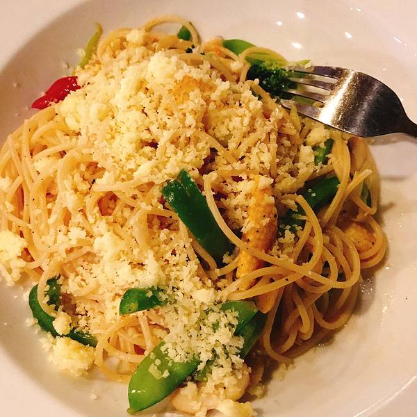 大名鼎鼎的脏鸭餐。 那就点评一下味道吧:吃第一次觉得还不错,有特色。但是第二次吃,就觉得真的是一般,还不如我们国内的卤鸭子、甜皮鸭、酱板鸭,吃起来很干,也没有什么肉。 所以,脏鸭餐值得“一”试,就“一”试而已。这个面也一般。 吃完午餐,我们往乌布皇宫的方向闲逛着,准备去赶22:00的shuttle bus回酒店。 到了乌布皇宫才晚上21:00,在站点对面找了一家咖啡馆。 点了一杯卡布奇洛,等车。shuttle bus准点来了,同行回去的都是我们挨着的三家别墅酒店。 乌布下起了小雨。 一到家,有点冷飕飕的,老公还坚持说要去泳池游一会儿,要不然这里一次都没下过水。