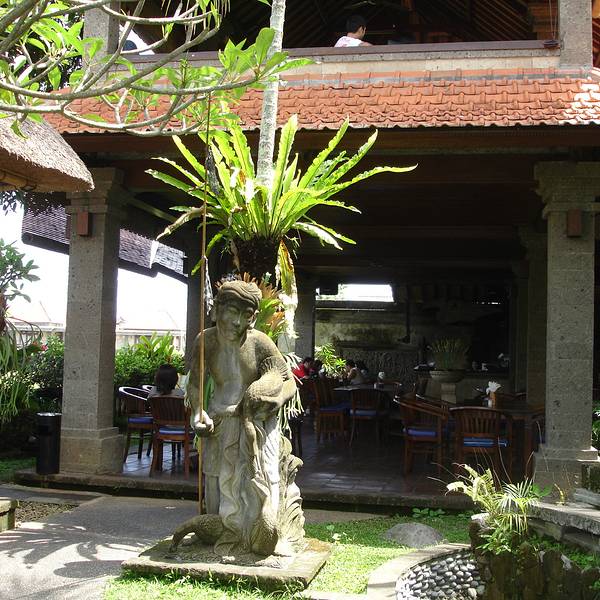 这里有一片稻田,用餐的露天卡座也很有特色,是需要脱了鞋盘坐的榻榻米风格,典型的巴厘岛建筑。就餐的时候可以享受这里的田园风光。鉴于我们中午刚吃完乳猪饭不久。我...哈哈,走着走着刚好来到了有名的脏鸭餐厅。