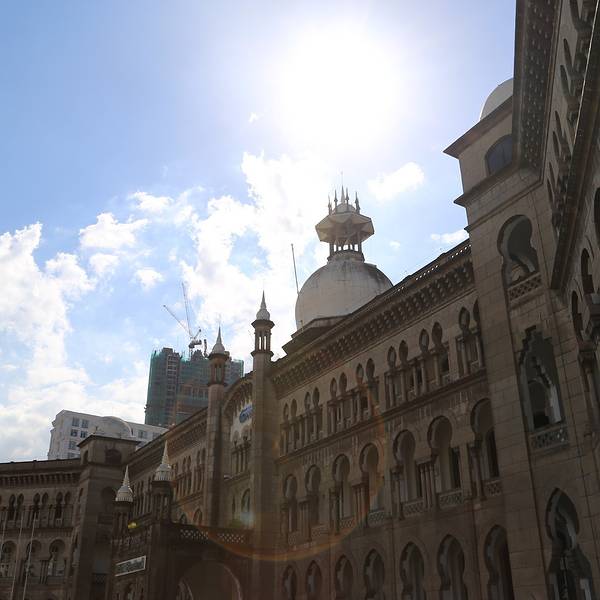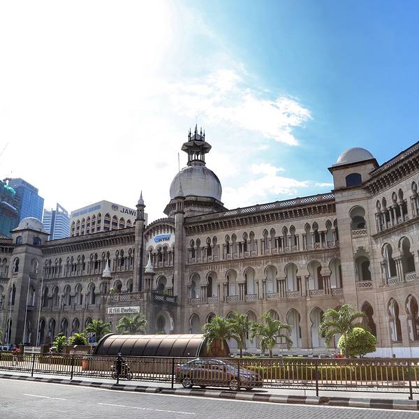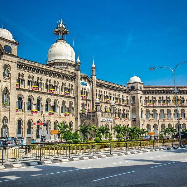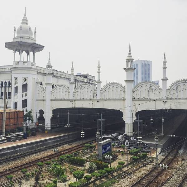 吉隆坡火车总站是摩尔式建筑的典范,由建筑师克博设计,雄伟的拱柱圆顶,琉璃的尖塔,给人一种拜占庭式仙境般的感受。 整个车站的设计像一个四方的城堡,火车道在中间。两边有“城门”供火车进出的。“城门”修的很精巧。火车从门洞中进出,仿佛又回到了那个年代。它在1910年建成,1986年装修改建,增加了现代化设施。 以前,乘客可从这个火车站前往马来西亚半岛西岸的大多数城镇和东岸的道北(Tumpat)也可直达新加坡和泰国。自从吉隆坡中环(KL Sentral)在2001年开始启用后,它的首要火车站地位已经被取代了。目前,它是电动火车服务的其中一站。 还有,不妨进入这座建筑看看其中腾空的楼梯井。而且这座建筑的地下通道会带你从地下穿过川流不息的公路,再回到对面的车站。 此外,你还可以站在车站对面的马来西亚铁路局大楼(Malayan Railway Administration Building)的门前观赏及拍摄这个火车站全景。目前的火车站就适合拍照,不需要太花时间特地游玩。