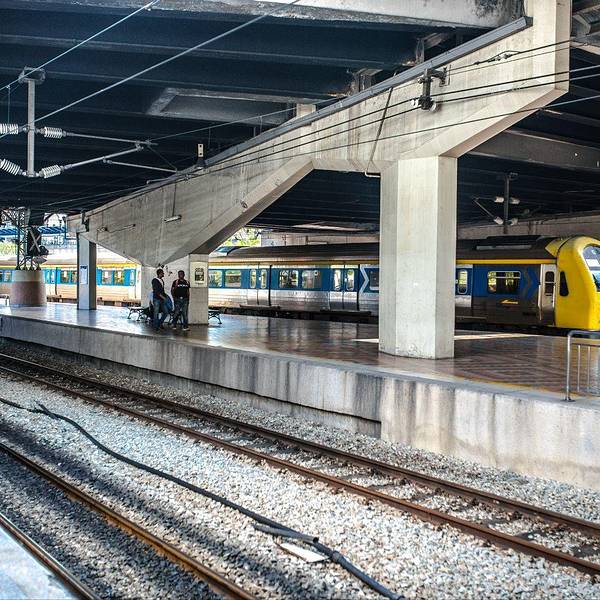 欣赏火车站雄伟的建筑风格,站在站台上看火车从“城门”中穿过。