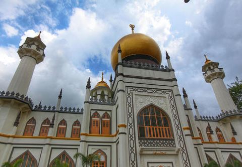 新加坡最大的清真寺,欣赏金色的圆顶,参观巨大的祈祷堂。
