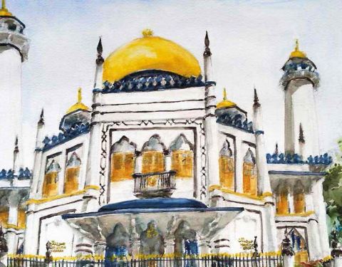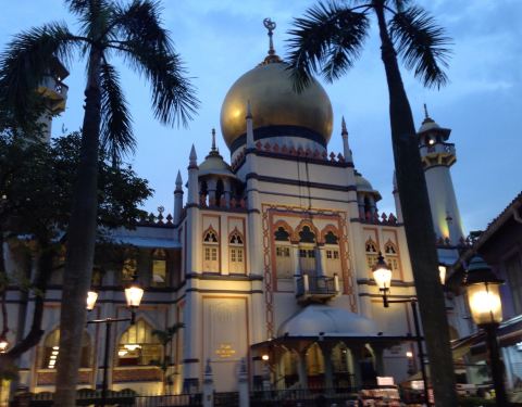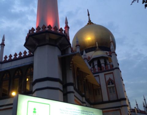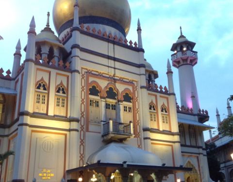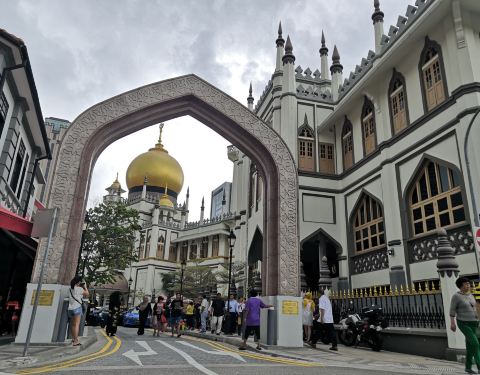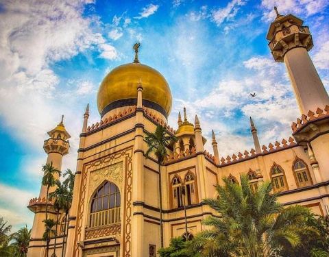 為紀念蘇丹國王的功績而蓋,是新加坡規模最大的清真寺,巨大的金色圓頂是其特色,一樓的部分空間有開放給一般遊客進入參觀,能近距離欣賞這棟弘大精美的建築,環繞清真寺四周則是一條以馬來文化為主軸的商業街,匯集眾多馬來文化紀念品及餐廳,在參觀完清真寺後可於此處品嚐馬來美食及選購具有馬來特色的紀念品。