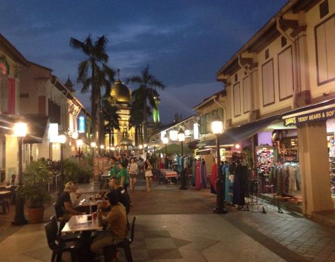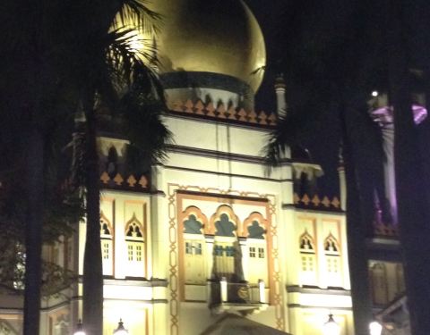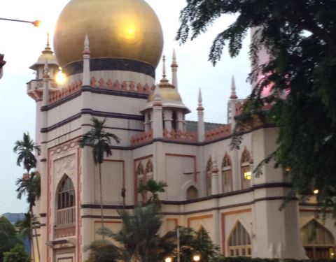 甘榜格南阿拉伯街、苏丹回教堂、哈芝巷都在一片,可以连着参观。进入回教堂需要脱鞋,男士需要裹一条长裙,女士需要穿一条长袍,入口处会有人递给你。只有一楼可以参观,可以看到在教堂内祈祷的人。教堂门口,有一些卖纪念品的小店。
