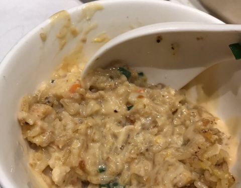一家四口来的,带了一中一小两个娃,主菜按店员推荐的量点了两只螃蟹(黑椒蟹和奶油蟹)! 前菜是香茅烤串,牛肉烤的非常嫩,入口即化,带上香茅的香味,配上秘制酱汁(里面还有小花生碎),一人一串刚刚好,然后主菜就上来了,奶油蟹味道香浓,蟹肉鲜嫩,极其适合孩子们的口味,黑椒蟹稍有一些辛辣,不过衬托蟹肉更鲜更Q,满口浓浓的满足! 主食点的是小份海鲜炒饭,量还是非常大,盛一小碗海鲜炒饭,加上奶油蟹酱汁拌匀,孩子们吃的简直是不肯放下!饭后甜点炒榴莲也超级赞,没来得及拍就被孩子们瓜分完了!饮料点了一杯虎牌啤酒和三只椰子,椰子汁非常清甜,总的来说价格相比较不算贵,吃的非常满意! 最后要说的是环境,就在鱼尾狮公园旁边,湖对面就是金沙酒店,灯光上来以后简直是美极了,露天座是绝对赞的选择,我们选的室内窗边座,又有冷气又有景色,心情太美了!