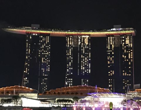 超级大螃蟹,菜品好吃!吃了大螃蟹,吃了鱼翅,羊排好吃,点的都是得过奖的菜,不虚此行。就是人多。但是就在鱼尾狮旁边,能看到晚上金沙的的灯光秀。吃不完,还打包了。因为有小朋友在,所以点了奶油蟹。好吃