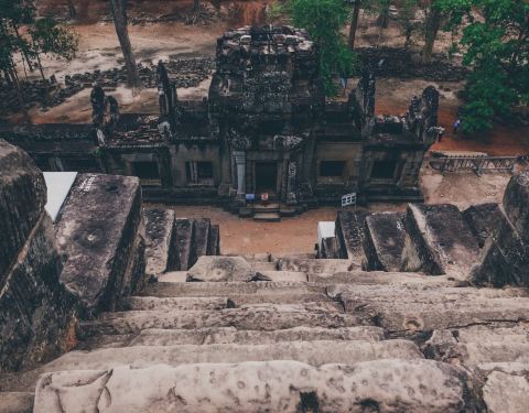 吴哥古迹中唯一一座几乎没有雕刻的寺庙,显得质朴而特别。
