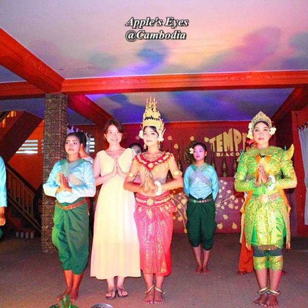 TEMPLE CLUB吃晚饭,这里东西挺好吃,而且坐二楼吃饭时还有高棉歌舞表演,很热闹。既有美食又有表演,十分超值,推荐大家来!TEMPLE CLUB很好找,就是PUB STREET路口“蹦次蹦次”最大声那家。 烤鸭 7 USD。鸭肉好嫩,酱汁很美味。柬埔寨的很多肉都很瘦,很老,这里的鸭肉嫩,是在柬埔寨吃到做得最好的肉肉洞里萨鱼汤 5 USD,鱼真心老,汤倒是真心鲜甜炒通菜 5 USD 椰子奶昔 1.75 USD,非常甜,好喝 香蕉奶昔 1.75 USD,香蕉有点生荷叶蒸糯米糕 2.5 USD,里面包点不知神马馅,甜的。糯米很香很糯,但是荷叶味道酸酸的,不是我的TYPE。 隆重推荐接椰奶绿豆西米2.5 USD,超级超级超级好吃!!!注意,是超级× 3 !! 我平时不爱甜食,但是这个甜品真的宇宙无敌超级巨好吃!我平时吃的西米露都是水水的,加香芋多。这个不同,柬埔寨的西米露是浓稠型的,有点像奶糊。甜度适中,椰奶浓稠,超级香甜。 加上绿豆的清新,很有点浓妆淡抹混搭的风味,很特别~TEMPLE CLUB 重头戏——APSARA,即传统高棉舞蹈表演,从晚上7点半开始直到9点半。在吴哥窟里,我们就层见过无数的APSARA——跳舞的仙女。同时,APSARA还是高棉传统舞蹈——仙女舞。表演结束后,演员会留在台上,喜欢的观众还可以上台,免费和她们合影留念