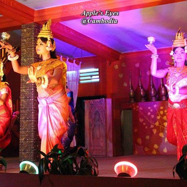 吃到了超好吃的咖喱蟹,其他的特色菜和这几天吃的差不多。有当地特色的现场表演,高棉的歌舞
