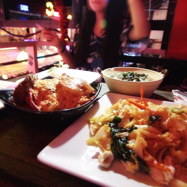 在吃完BBQ后,有点小晕,导游开了自己泰国的私家车带我们去街边吃了当地美味的冰沙~还有土鸡蛋和各种水果制成!超美味!!吃完饭后当然要去HI吧HIGH啦~~我们都疯了~~~