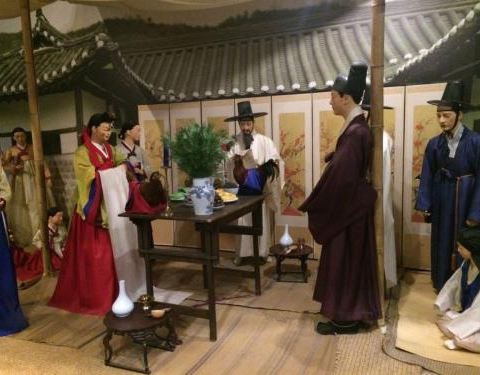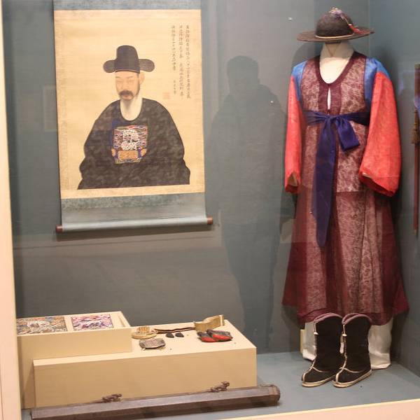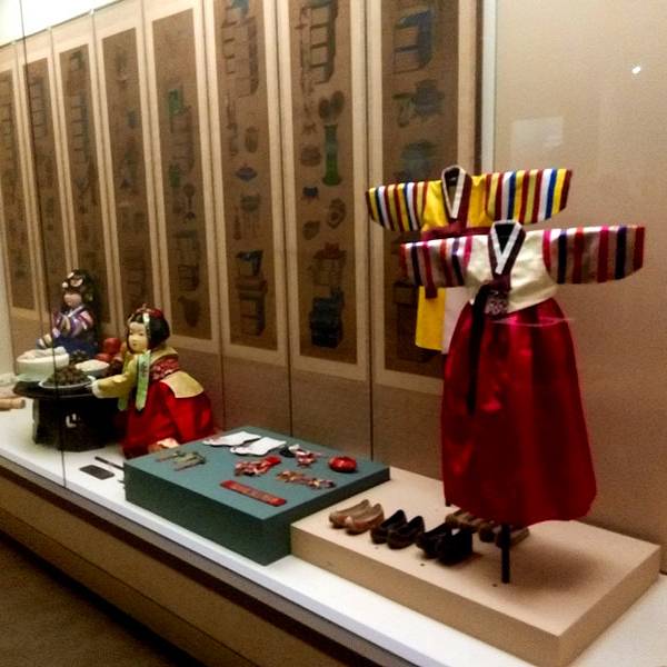 金骆驼 由于是自己观看,没有讲解,本人文化水平有限,所以以下介绍有不对地方,欢迎指出,我们一起学习国立民俗博物馆位于景福宫内,是最具代表性的韩国生活文化博物馆【交通】乘坐地铁3号线,在景福宫站下车,从5号出口出来步行前往即是【门票】免费开放,旁边的景福宫是收费,而且景福宫里经常有拍电影的剧组,去...国立民俗博物馆位于景福宫内,是最具代表性的韩国生活文化博物馆【交通】乘坐地铁3号线,在景福宫站下车,从5号出口出来步行前往即是【门票】免费开放,旁边的景福宫是收费,而且景福宫里经常有拍电影的剧组,去了正好赶上一个,但是一个韩国妹子凶巴巴的冲我喊no photo!【介绍】博物馆里一共有三个展厅,第一展厅是韩民族生活展馆,第二展馆为农业展馆,第三展馆是韩国人生活展示馆。其实感觉跟国内的很多博物馆都差不多,只是文化不同,服装不同,同样有很多的蜡人,情景再现。由于是自己观看,没有讲解,本人文化水平有限,所以以下介绍有不对地方,欢迎指出,我们一起学习这是干什么的场景,其实我也不知道,哈哈这应该是韩国古代“私塾”的牌子吧这件展厅含教育元素的东西还真不少这应该是为官人吧!我很喜欢这件服装,以前也只能在电视上看到这是韩国象棋吗?跟中国的有什么区别?越来越觉得····呵呵,不说,自己脑补其实感觉韩国很多文化都与中国的一样,这应该也是中国传过去的乐器吧,是古筝还是古琴这是穴位图?这应该是一家”婚庆店“吧,哈哈,反正有喜有寿的这饭看着好有食欲,不过吃不了古书,全是韩语,看不懂的感觉这是韩国小朋友在学习吧,不过为什么男的带帽,女的光头呢?